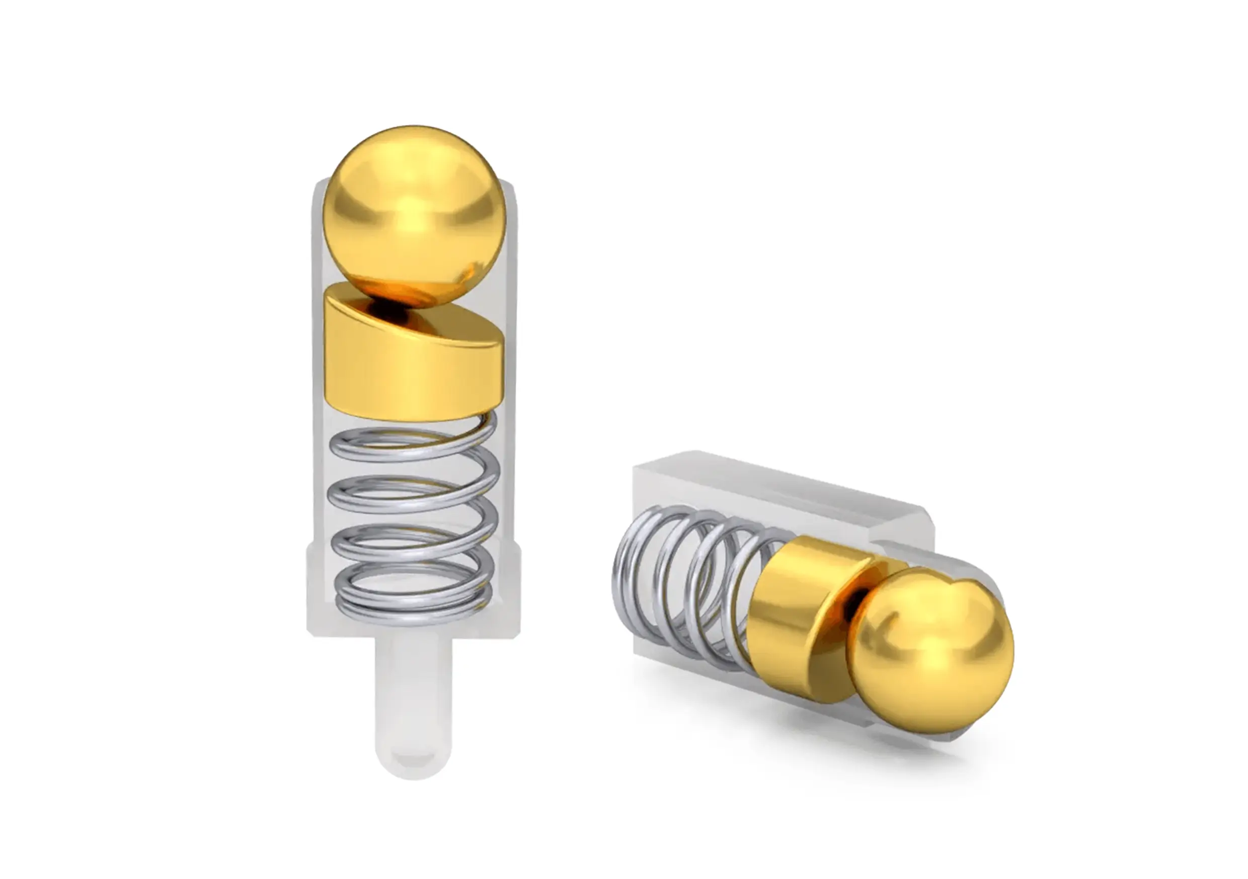 In a dip pogo pin, the internal spring and beveled structural design generate a lateral force during compression. This force ensures that the gold-plated plunger remains in constant, stable contact with the inner wall of the barrel. As a result, the pogo pin achieves a consistently low contact resistance and ensures a dependable and repeatable electrical connection.